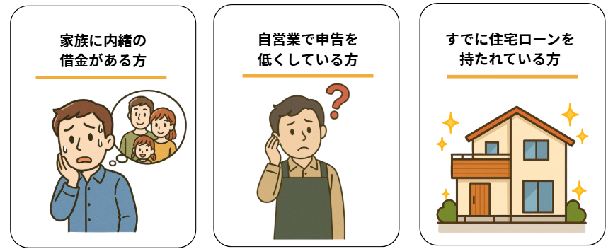 あるいは、不動産業者が熱心に様々な銀行を当たってくれたものの、住宅ローンに全く通らなかったという場合もあります。普段金融機関との取引が全くない不動産業者が、突然銀行に行って「ウチのお客様が住宅ローンを組みたいと言っているから審査してくれませんか?」と相談したところで、力になってもらえません。