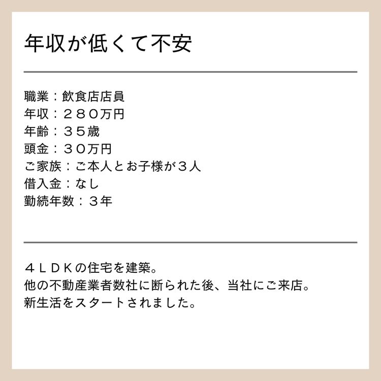 他の不動産業者では通せなかった住宅ローンを当社なら通すことができるのは、このような理由があるからです。 |