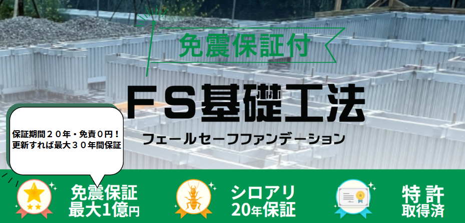 免責0円で最大1億円の補償が付くFS基礎工法について、詳しくお伝えします。