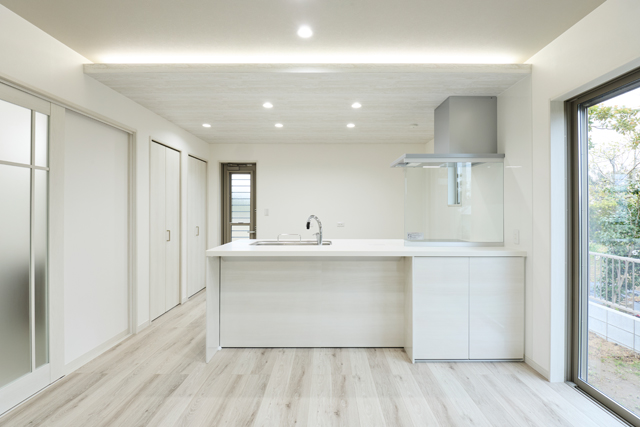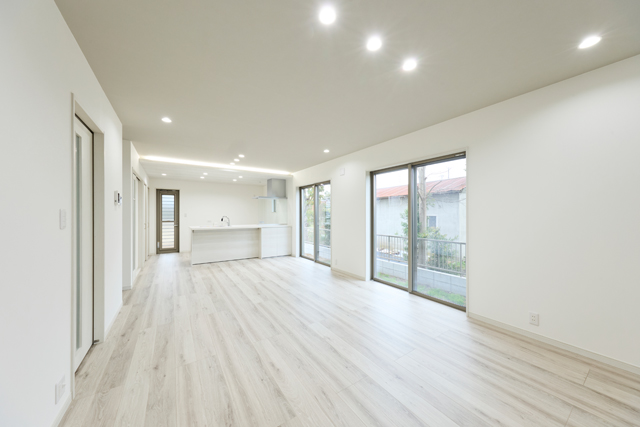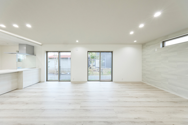 明るさと広がりを感じさせる、上品で心地よいリビング