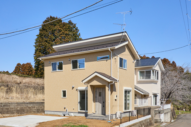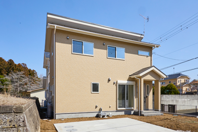 明るいベージュの外観が、街並みに温かみを添えるお家 ※外構はAIで作成されたイメージです。 |