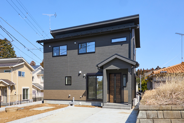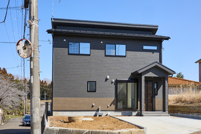 落ち着いたダークトーンの外観が、上品で重厚感を漂わせる住まい ※外構はAIで作成されたイメージです。 |