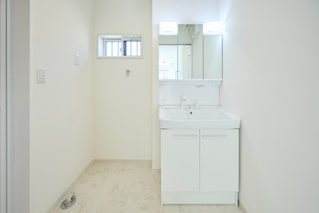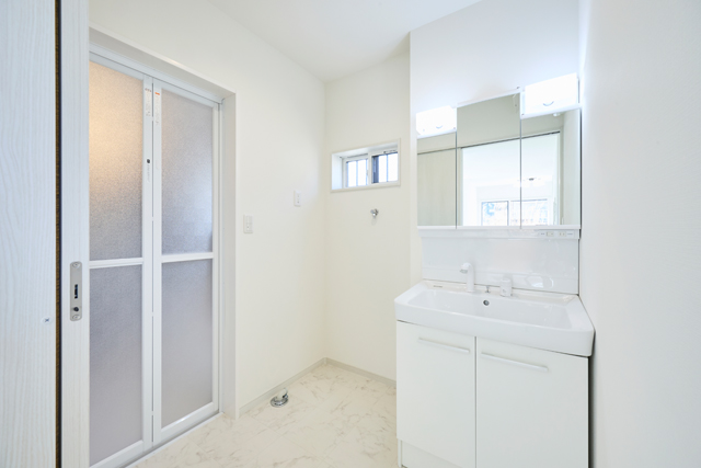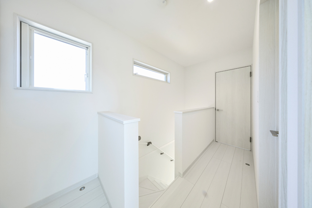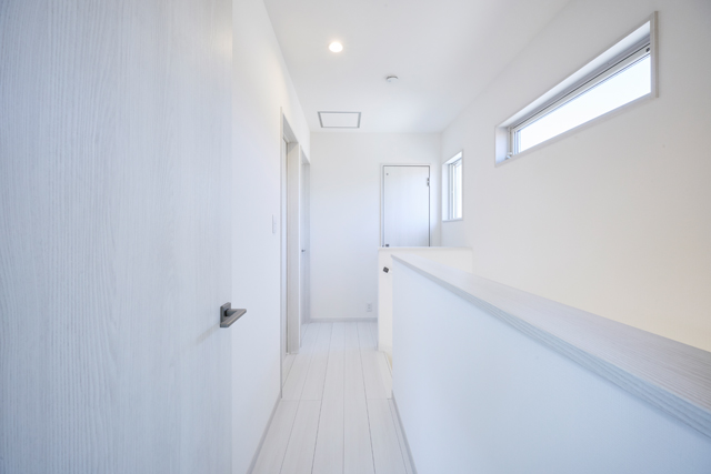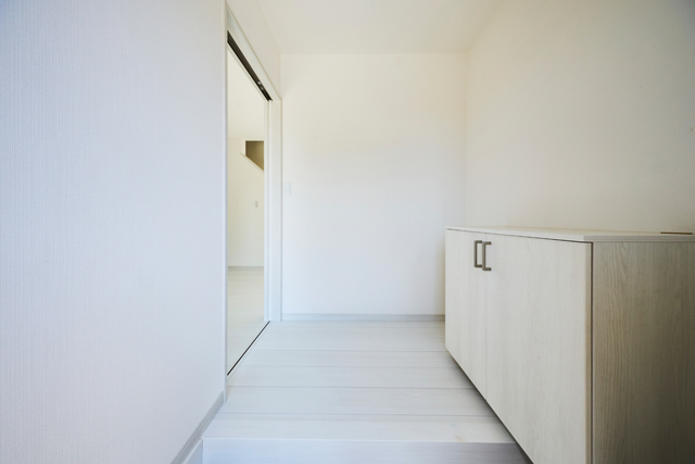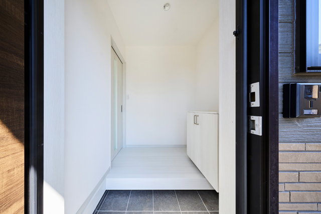 白を基調とした明るい玄関が、清潔感と開放感を演出しています |