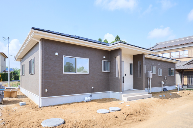 シンプルで落ち着いた佇まいが、安心感を与えてくれる平屋 ※外構はAIで作成されたイメージです。 |