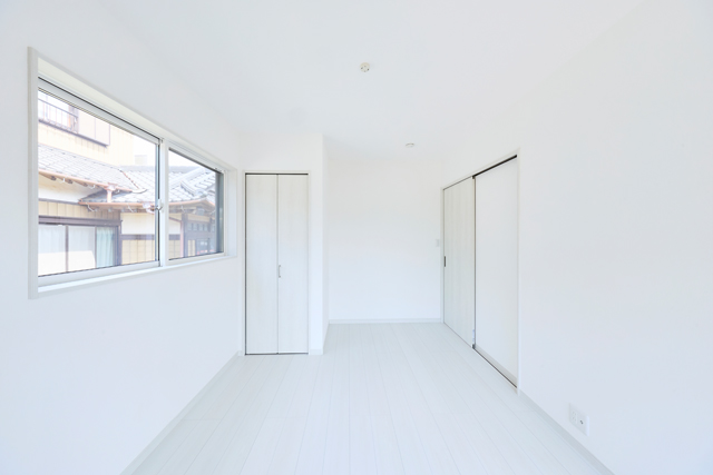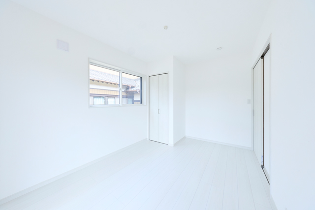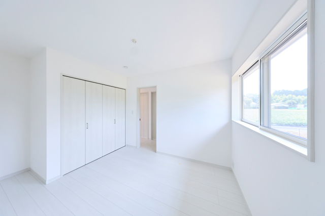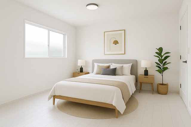 真っ白な空間が広がる、自由に彩れるシンプルな寝室 ※インテリアはAIで作成されたイメージです。 |