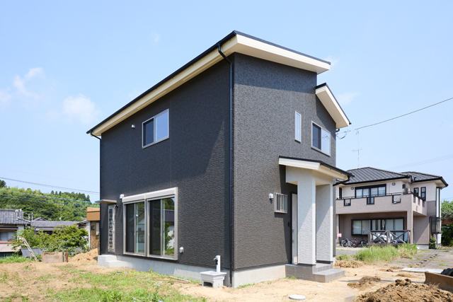 スタイリッシュな外観とモダンな二階建ての家 ※外構はAIで作成されたイメージです。 |