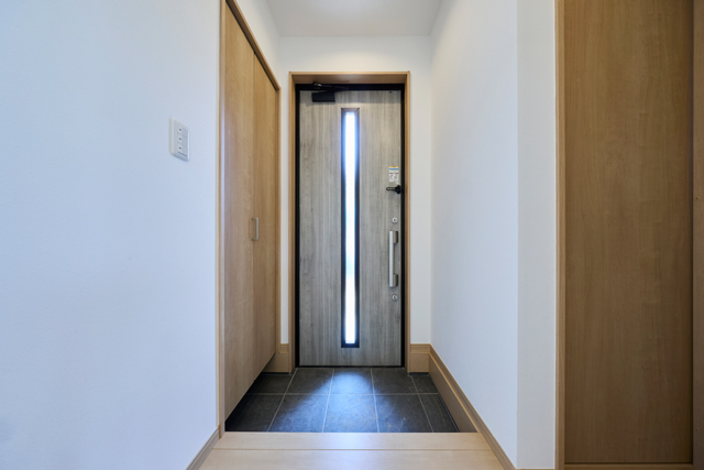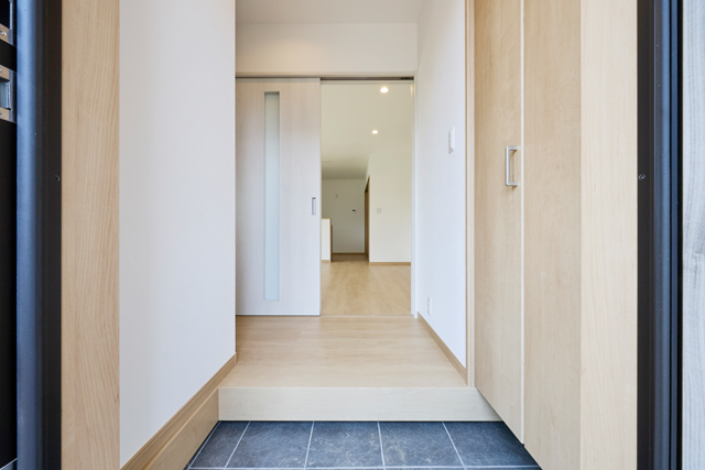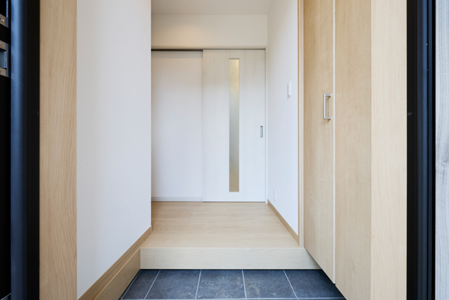 明るい木目とシンプルなデザインが心地よい、爽やかな玄関 |