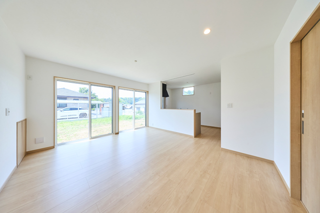 大きな窓から光が降り注ぐ、開放感あふれるリビング