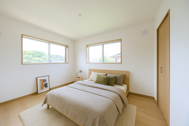 やさしい色合いに包まれた、落ち着きのある寝室 ※インテリアはAIで作成されたイメージです。 |