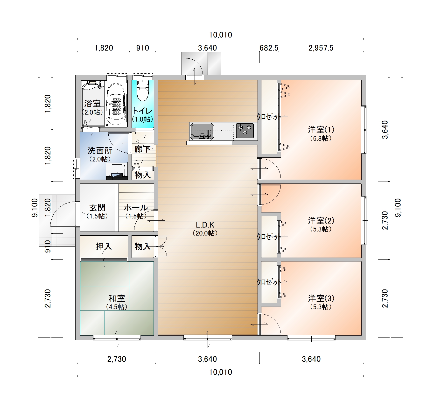 3つの洋室それぞれにクローゼットを完備し、生活空間を広く保てます。