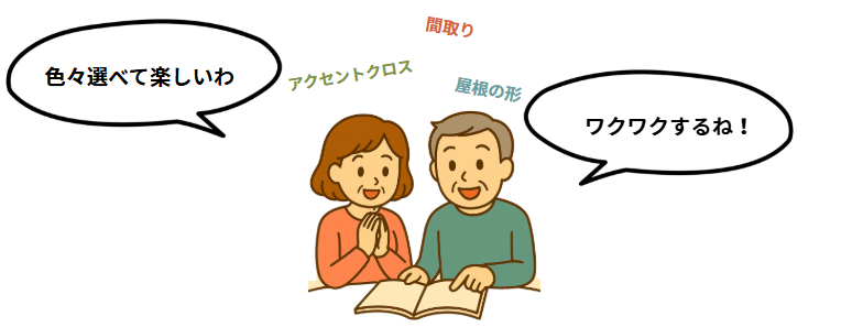 間取りを決めたり、外観を決めたり、色を選んだりと、標準仕様でも選べることがたくさんあります。