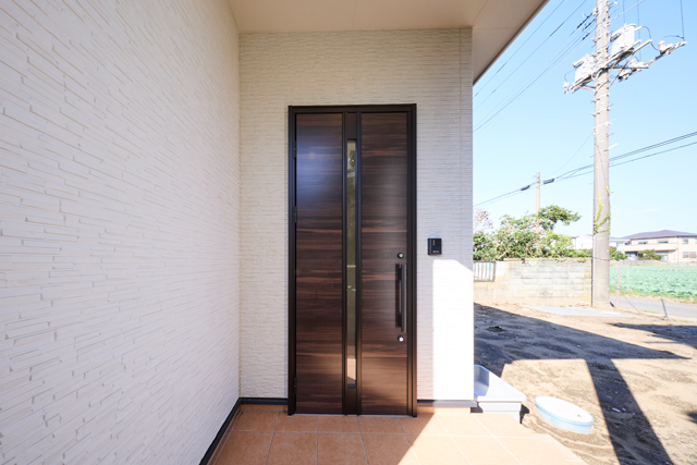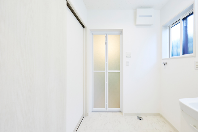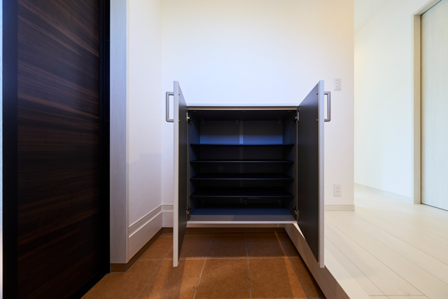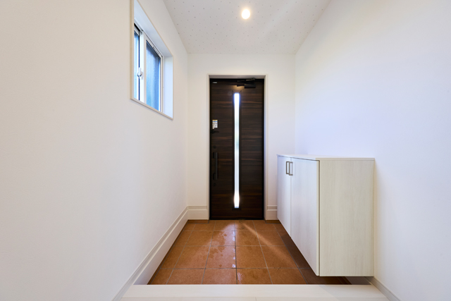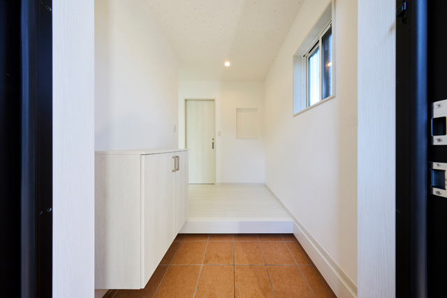 白を基調とした明るい玄関で、清潔感と開放感にあふれています |