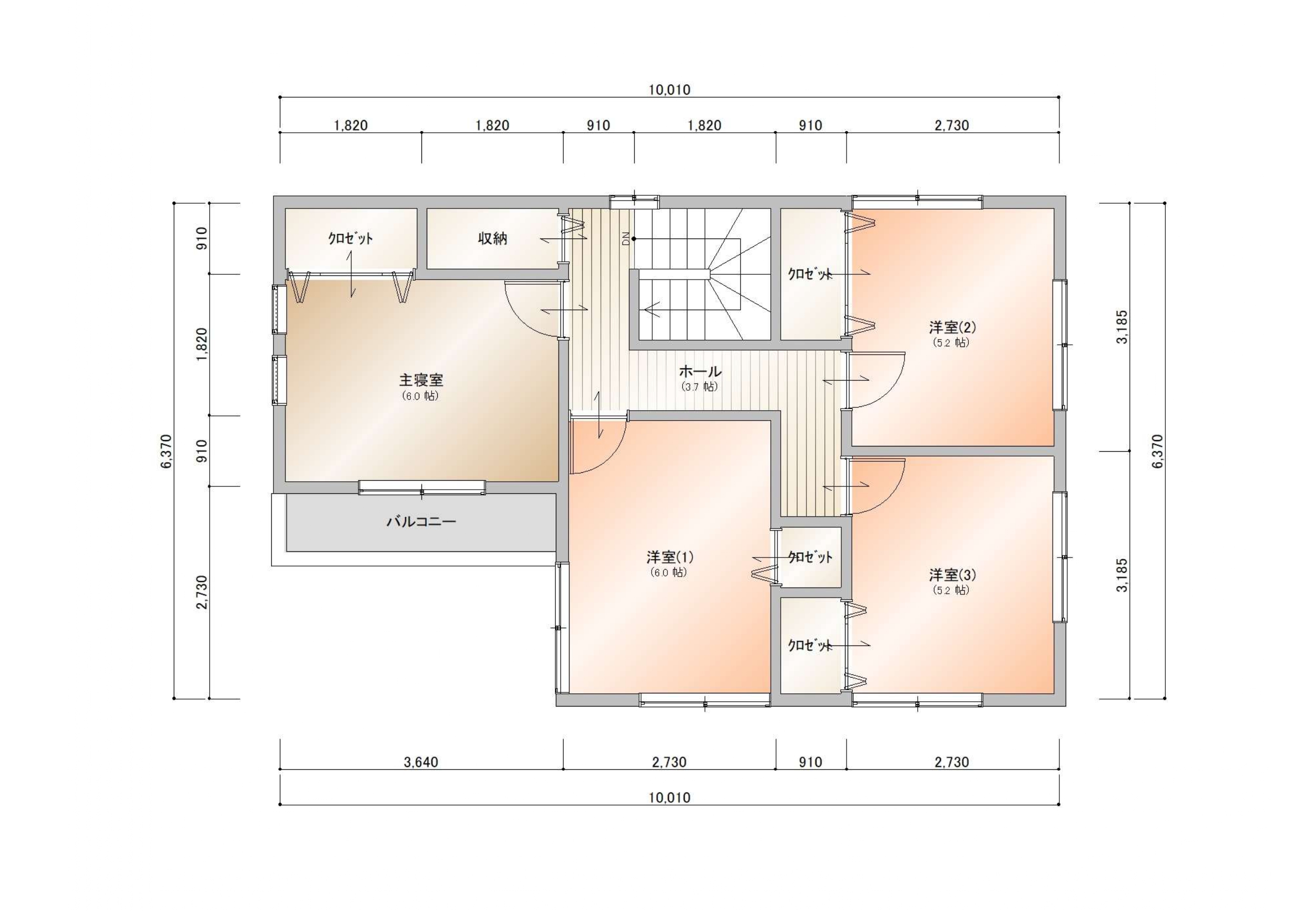 階段下収納・押入・各部屋のクローゼットに加え、2階には大容量の収納を配置。