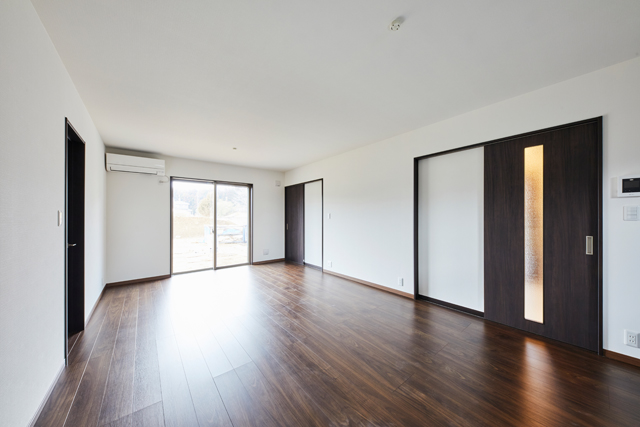 落ち着いた木目が映える、広々リビング空間。 ※インテリアはAIで作成されたイメージです。 |