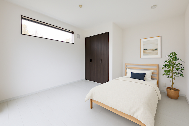光を取り込む高窓で、明るさとプライバシーを両立した寝室。 ※インテリアはAIで作成されたイメージです。 |