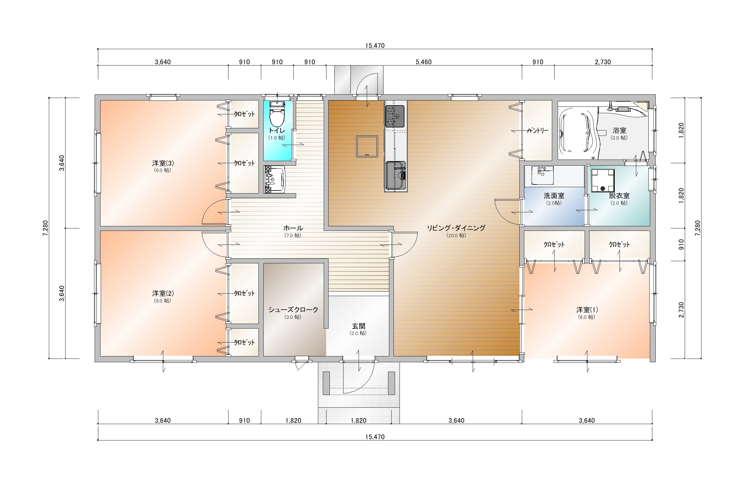 3帖のシューズクロークやパントリー、各洋室のクローゼットなど、片付け上手になれる収納力が魅力です。