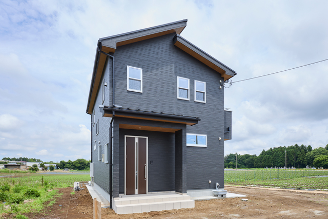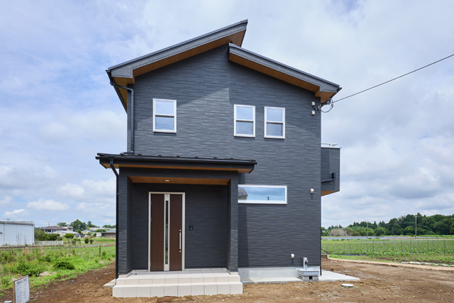 黒い外壁とすっきりとしたフォルムが目を引く、重厚感あるモダンな住まい ※外構はAIで作成されたイメージです。 |