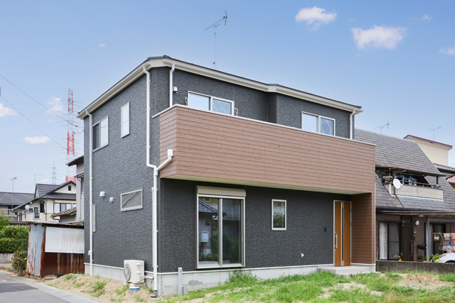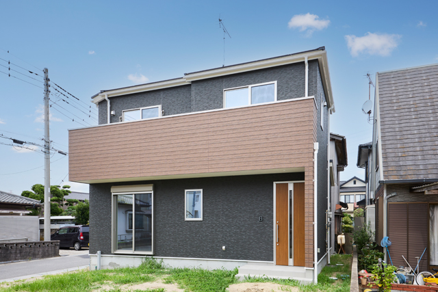 ブラックと木目のコントラストが映える、スタイリッシュで落ち着いた雰囲気の住まい ※外構はAIで作成されたイメージです。 |