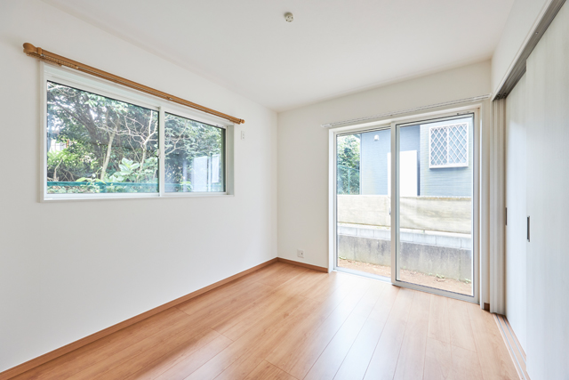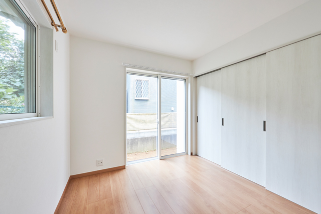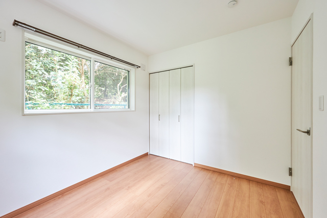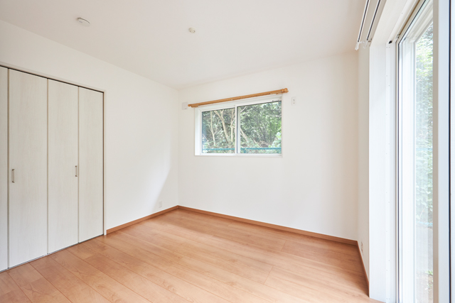 やわらかな光と明るい床が心地よさを感じさせる寝室です |