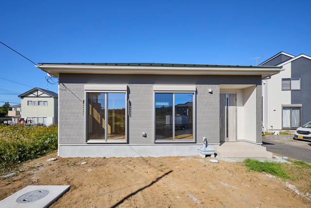 大きな窓から光が差し込む、明るく快適な平屋の住まい ※外構はAIで作成されたイメージです。 |