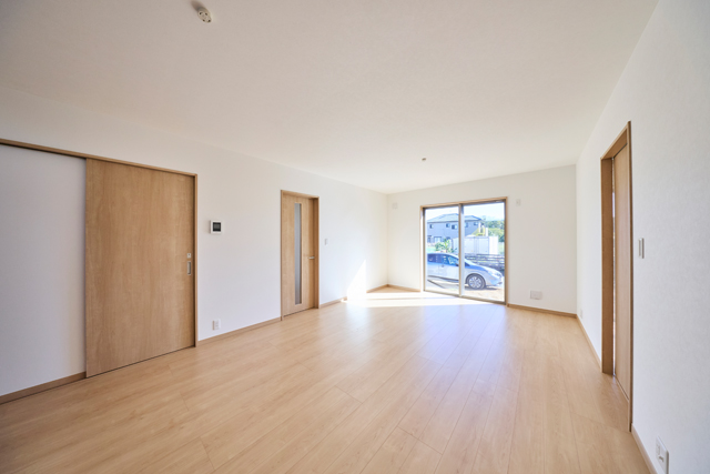大きな窓からの光で、家族の時間をより明るく彩るリビング |