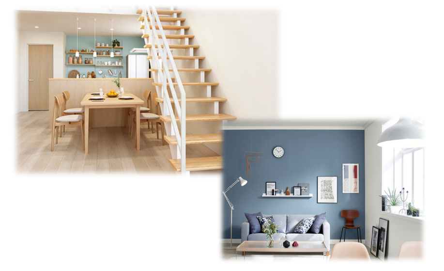 ホーム 標準仕様 内装・床 クロス クロス クロス □クロス(壁紙)は、量産品(メーカーは当社指定)が標準となります。色見本を貸し出しますので、その中からお選びください(1種類)。 リビングだけは別格! リビングだけは「一点豪華主義」でいきたい らら♪ハウスは、そんなご要望にお応えします。 リビングのアクセントクロス、床、建具は他の部屋とは違う色をお選びいただくことができます。 お好みの色を選んで、家族がくつろげるリビングにしましょう。 リビングのアクセントをお選びいただけます。