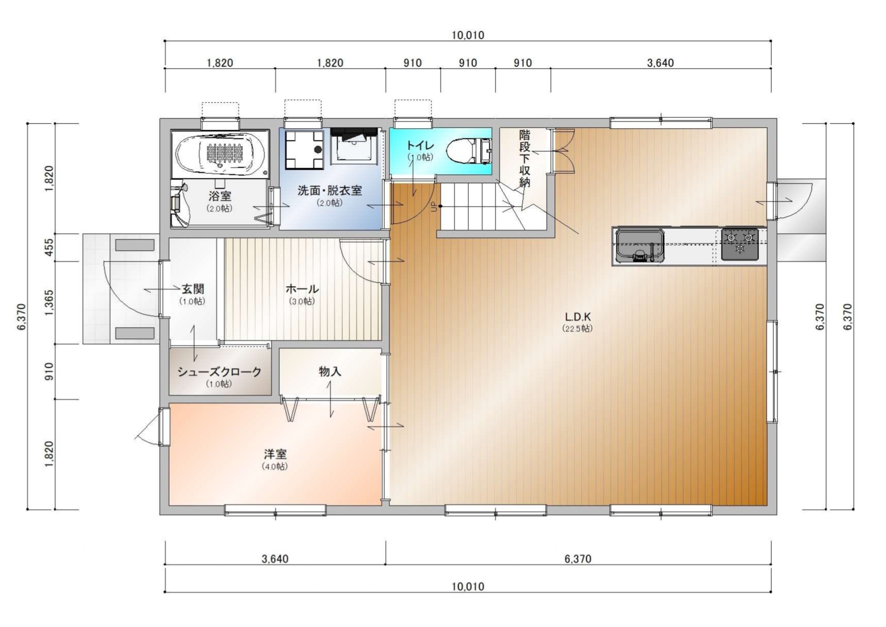 キッチンから洗面・浴室へとスムーズにつながる動線設計。シューズクロークや階段下収納など、片付け上手になれる工夫も満載です。