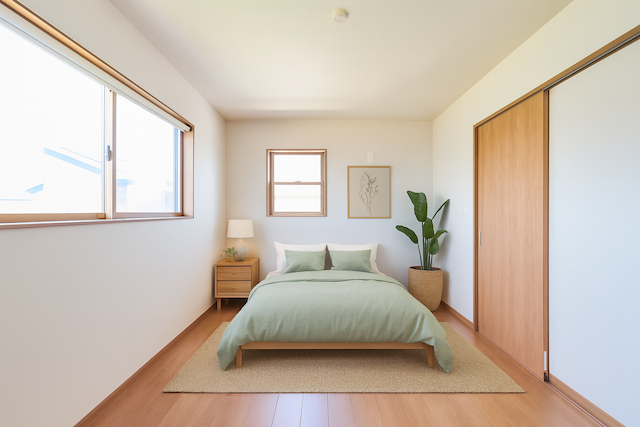 木の温もり、やさしい空気に包まれる寝室 ※インテリアはAIで作成されたイメージです。 |