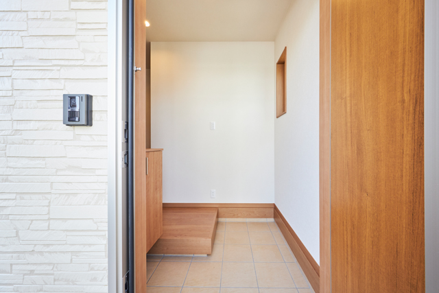 木の温もりがやさしく迎えてくれる、心落ち着く玄関 |