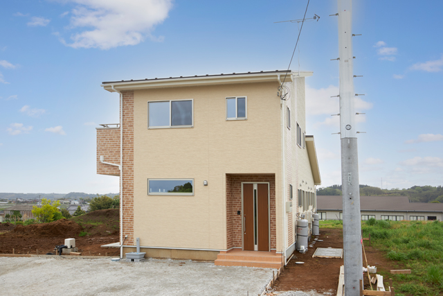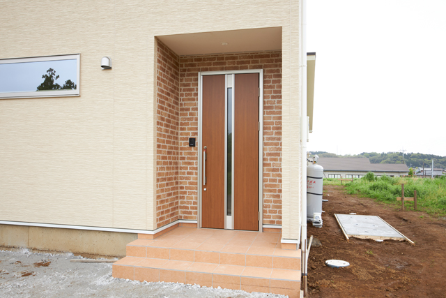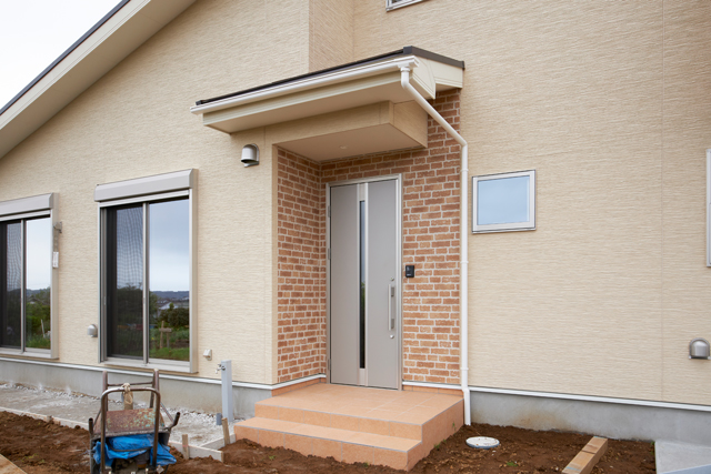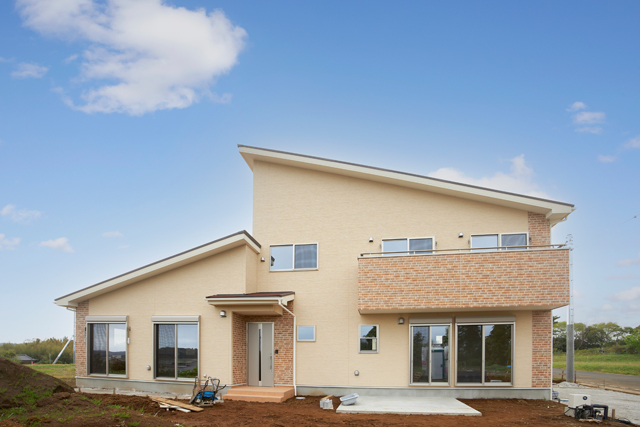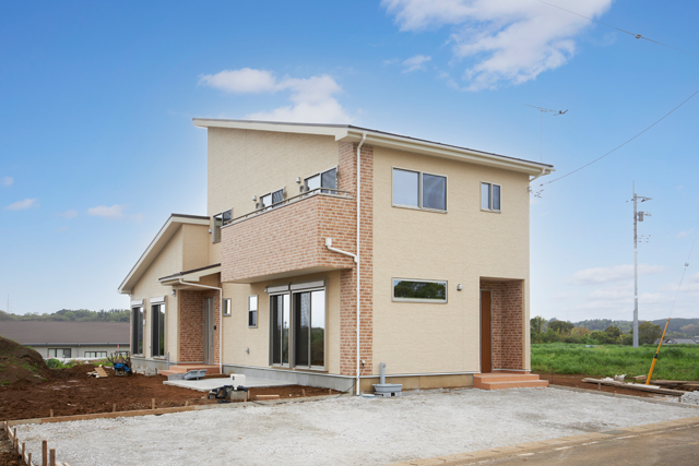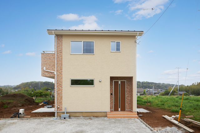 陽光に映える、レンガ調デザインが美しい住まい。 ※外構はAIで作成されたイメージです。 |