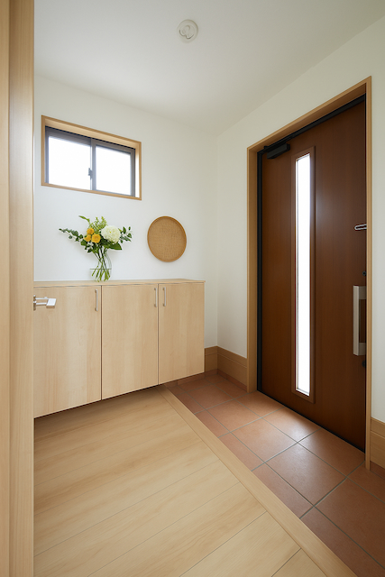 ナチュラルな木目が、帰宅するたびに安らぎをくれる玄関。 ※インテリアはAIで作成されたイメージです。 |