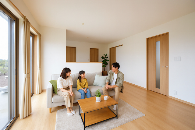 家族の時間をより豊かにする、明るく広々としたリビング。 ※インテリアはAIで作成されたイメージです。 |