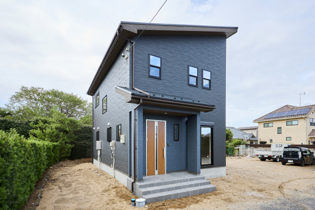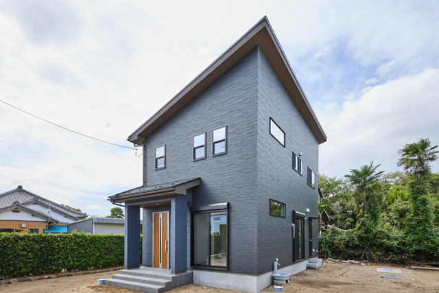 スタイリッシュな黒い外壁が印象的な住まい。落ち着きと高級感を兼ね備えています。 ※外構はAIで作成されたイメージです。 |
