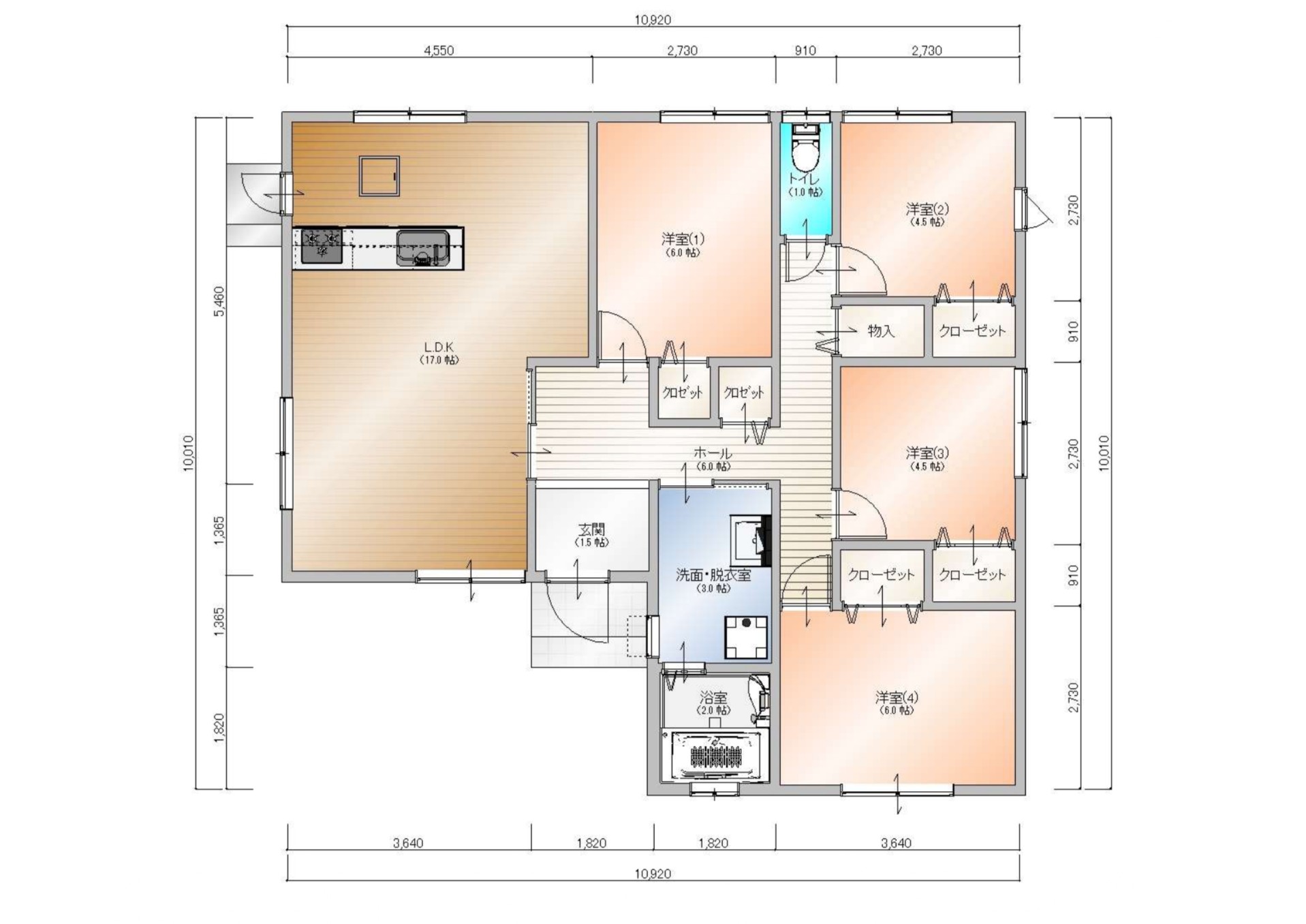 生活動線がスムーズで、家事や身支度がしやすい効率的な間取りです。