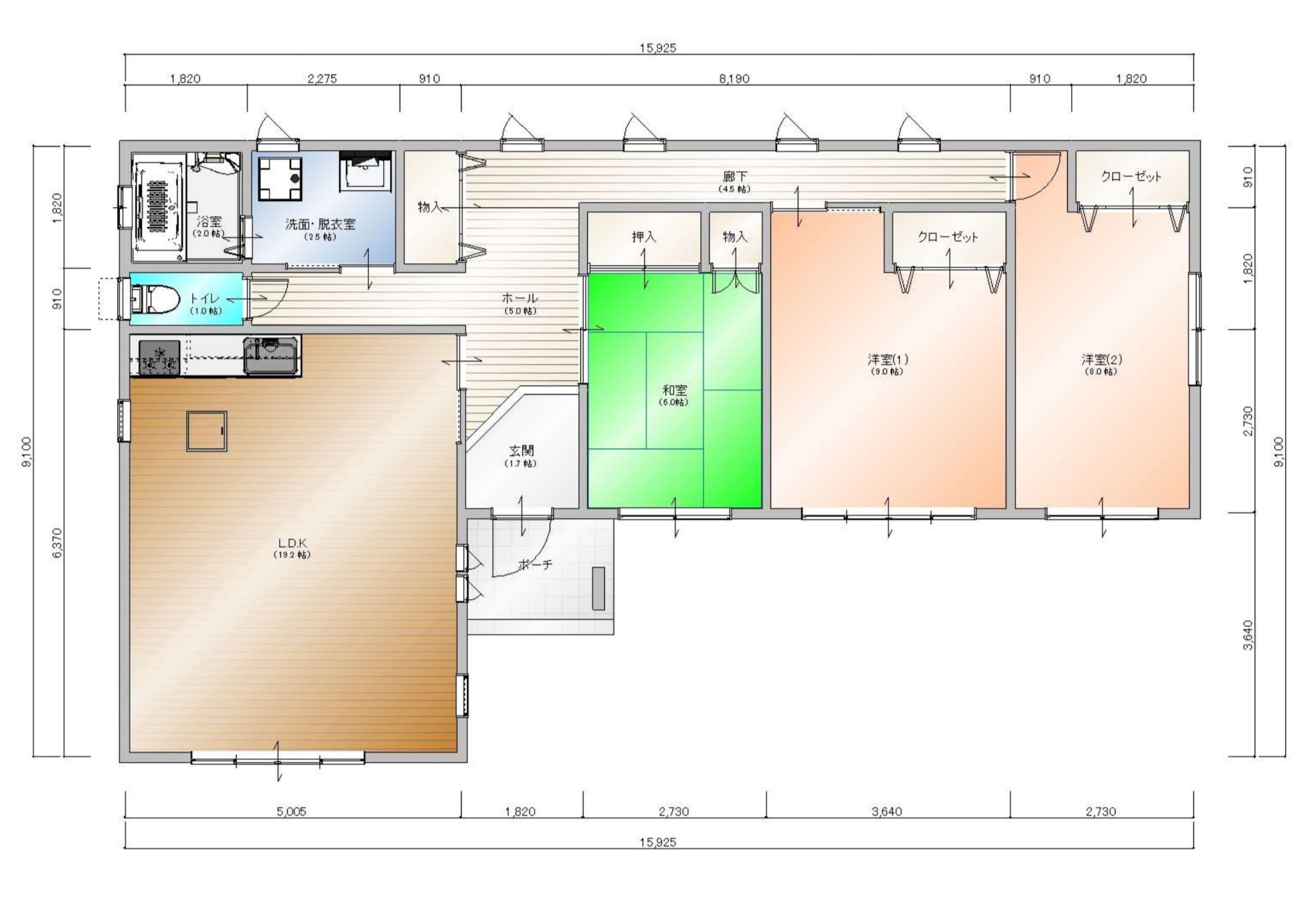 南面に主要居室を配置し、どの部屋にも自然光が差し込む快適な空間設計。