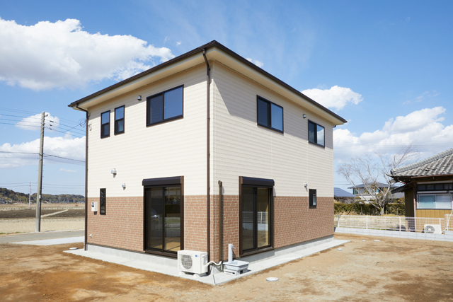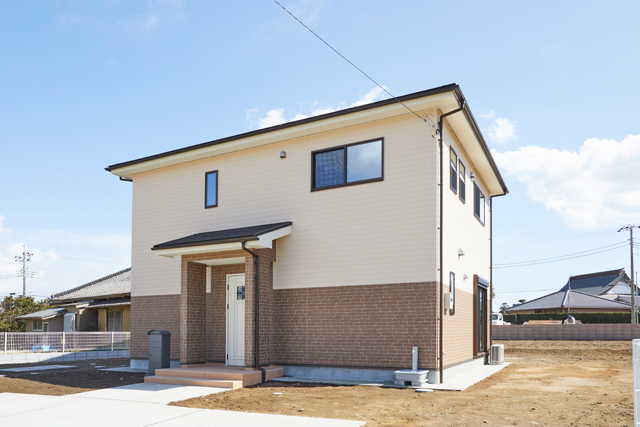 ツートンカラーが映える、明るく爽やかな外観デザイン。 ※外構はAIで作成されたイメージです。 |