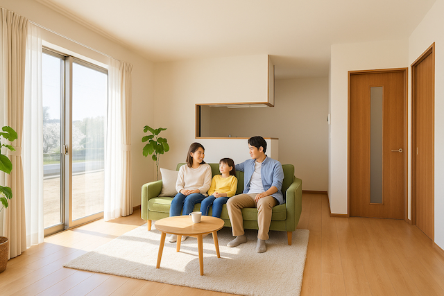 自然光と木の温もりが調和する、やさしいリビング空間。 ※インテリアはAIで作成されたイメージです。 |