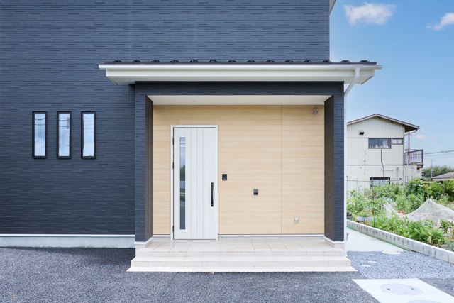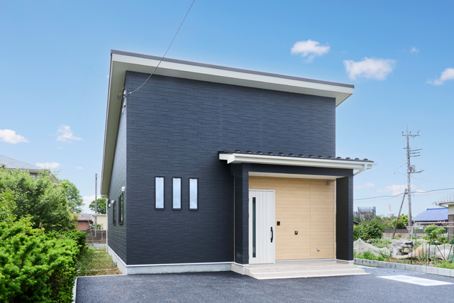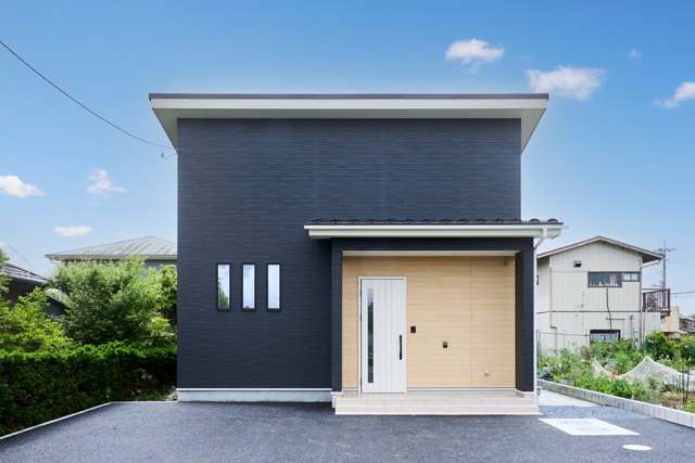 黒と木目のコントラストが美しい、スタイリッシュで洗練された佇まいの家 ※外構はAIで作成されたイメージです。 |