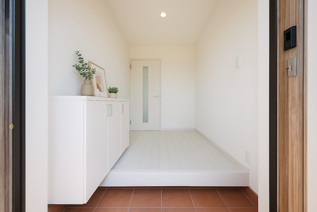 白を基調とした明るい玄関。シンプルな美しさが毎日の暮らしを心地よく迎えます。 ※インテリアはAIで作成されたイメージです。 |