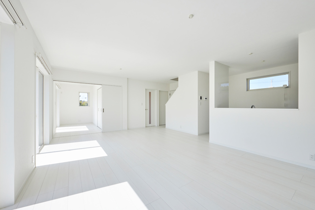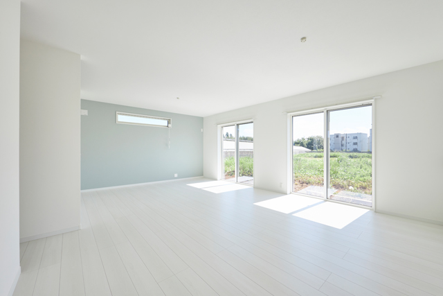 ホワイトを基調とした空間に、やわらかなブルーのアクセントが爽やかさをプラスしたリビング。 ※インテリアはAIで作成されたイメージです。 |