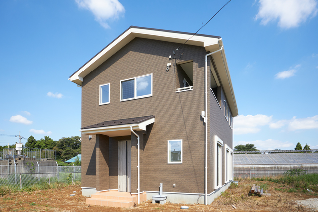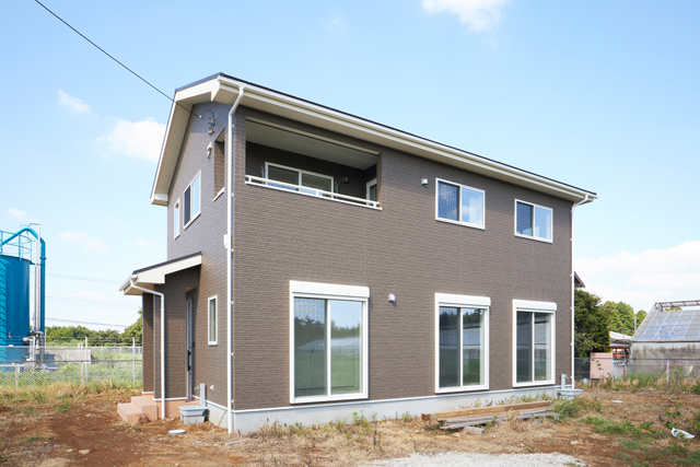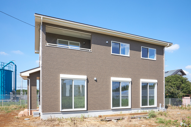陽射しに映えるスタイリッシュなファサードデザイン。 ※外構はAIで作成されたイメージです。 |
