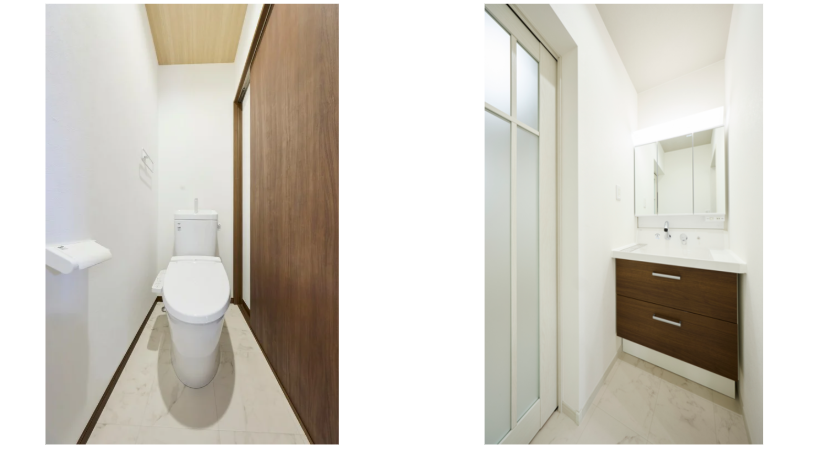 ホーム 標準仕様 内装・床 水回り床 水回り床 水回り床 クッションフロア □トイレ、脱衣所の床はクッションフロアです。 □色柄は、下の写真と同様となります。 クッションフロアは、防水性があり、日々のお掃除も簡単 クッションフロアの最大の特長は「防水性がある」ことです。クッションフロアは表面が塩化ビニルで加工されているため、水を吸収せずに弾くという性質を持っているのです。濡れた足で歩いてもビニルですので、全く問題はありません。 その上、クッションフロアはお手入れが簡単です。普段は、掃除機をかけたり、雑巾で水拭きする程度で十分です。 このため、水回りにはクッションフロアを採用いています。