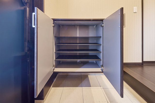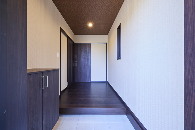 落ち着いたダークカラーが上質さを感じさせる玄関 |