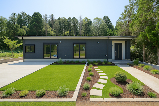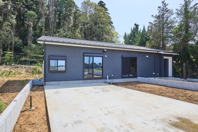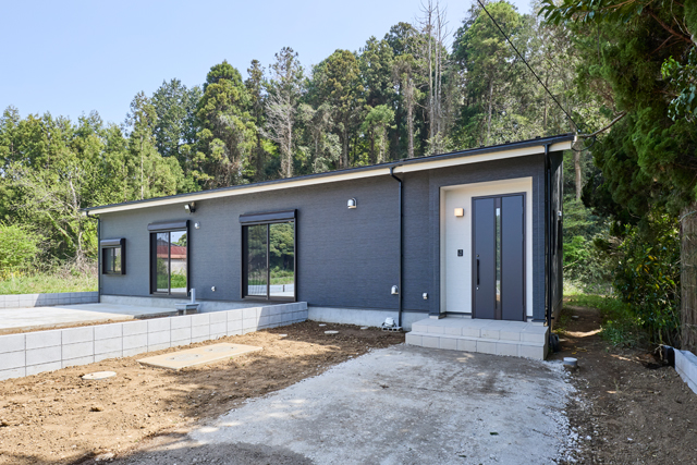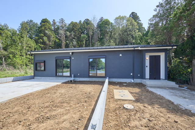 シンプルなデザインに落ち着いた雰囲気が漂う、スマートな平屋 ※外構はAIで作成されたイメージです。 |