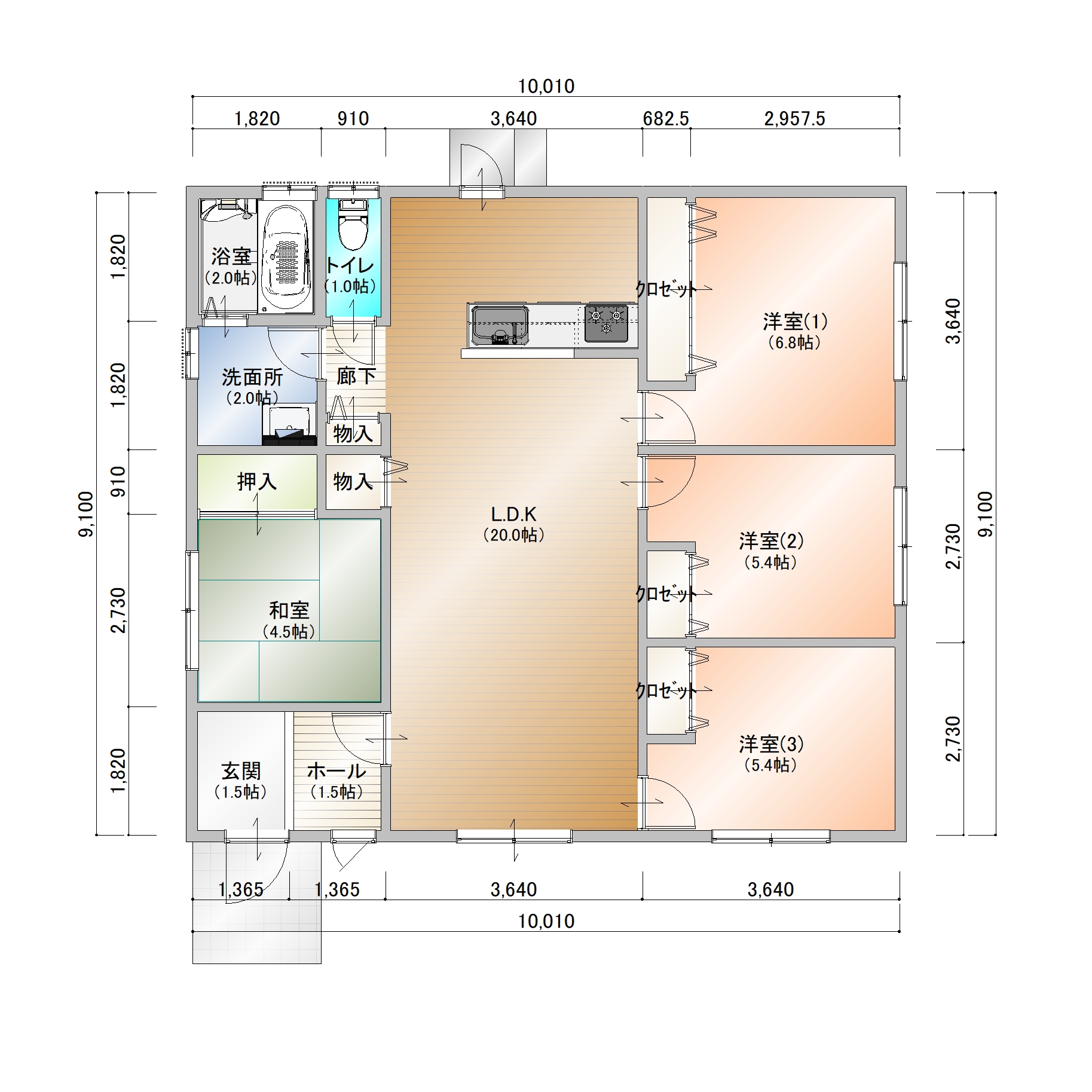 ・開放感たっぷりの20帖LDKで家族が集う大空間
