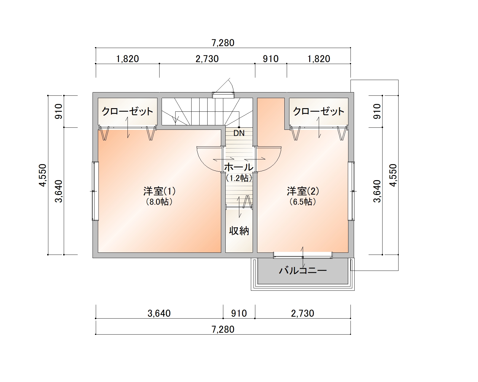 2階には8帖・6.5帖の洋室を確保。家族の成長やライフスタイルの変化にも柔軟に対応可能。