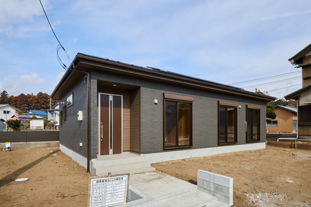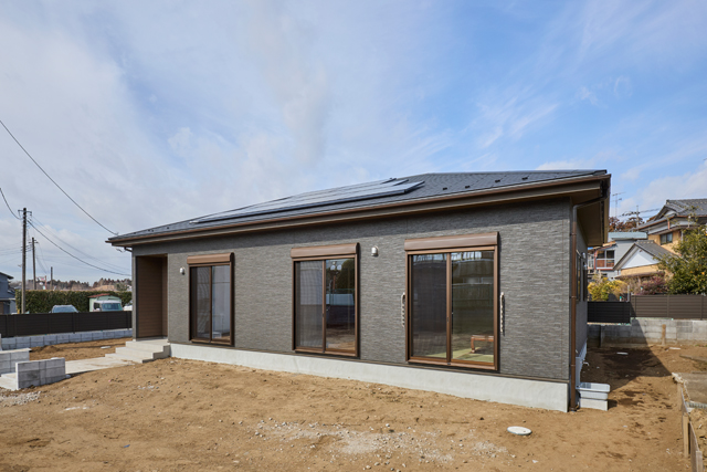 落ち着いたダークトーンの外観が、高級感と重厚感を感じさせる平屋 ※外構はAIで作成されたイメージです。 |