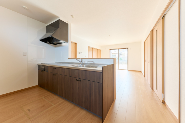 たっぷりの収納が魅力、家族が自然と集まりそうな開放的なリビング