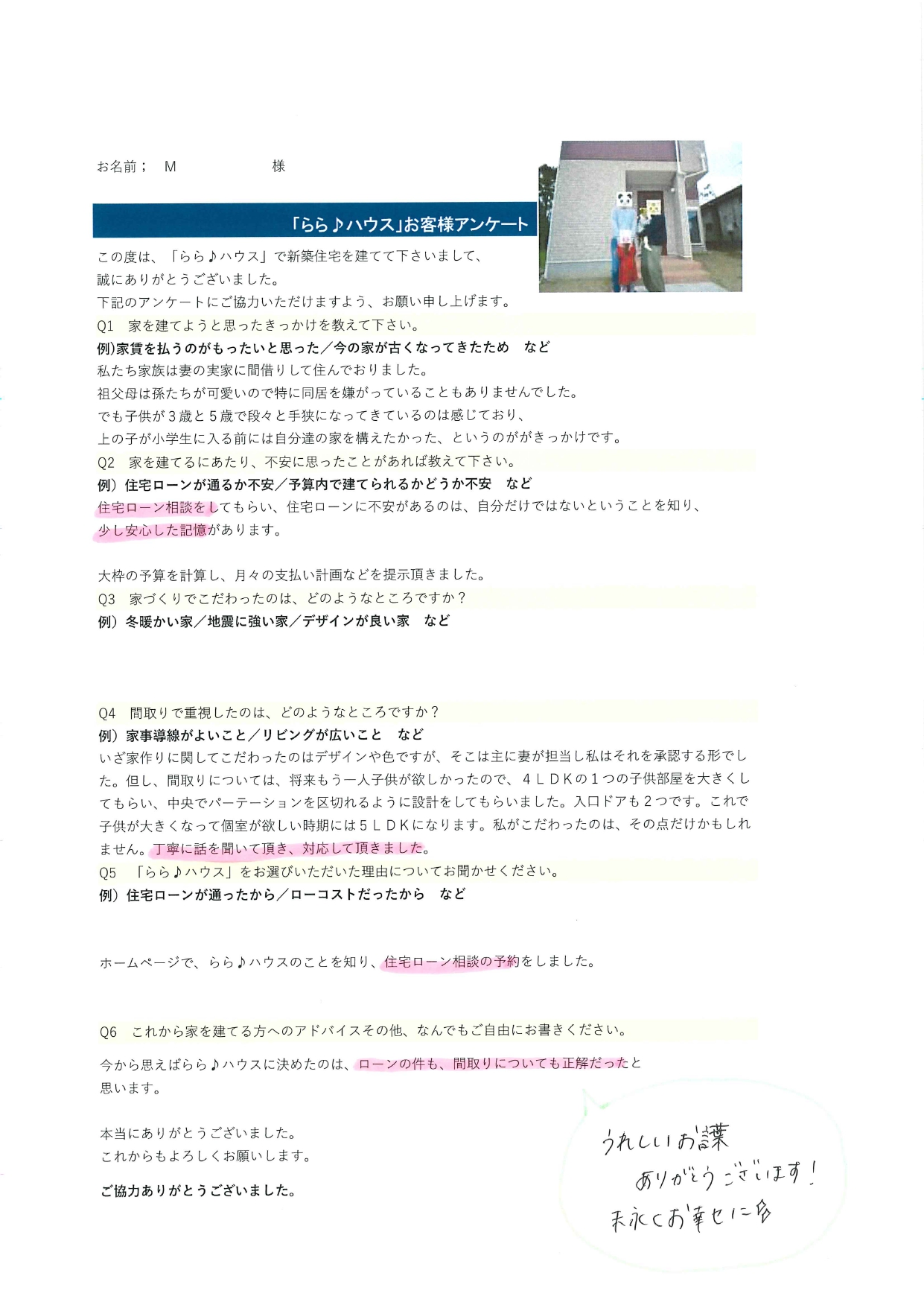 Q6. これから家を建てる方へのアドバイス、その他ご自由にお書きください。