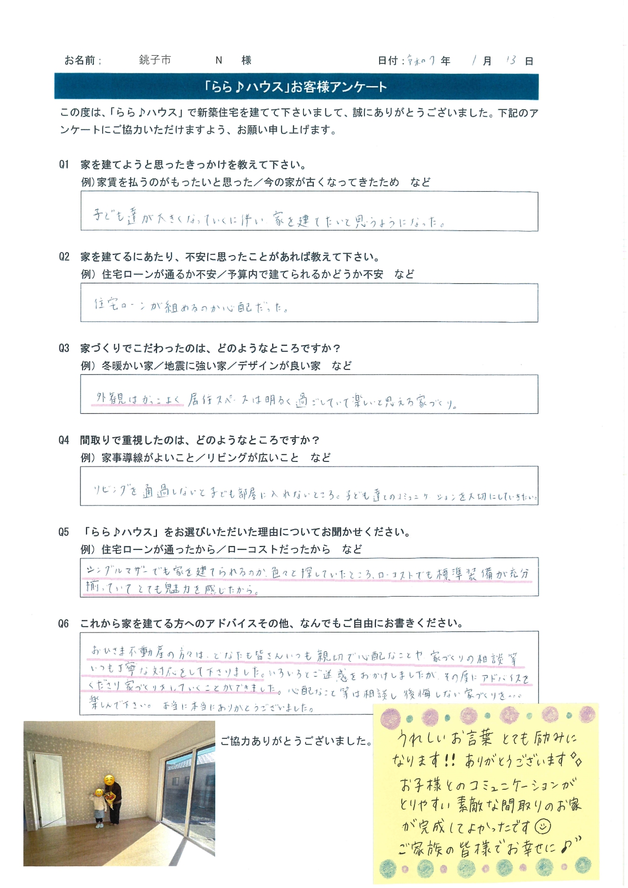 色々と迷惑をおかけしましたが、その度にアドバイスをくださり家づくりをしていくことができました。